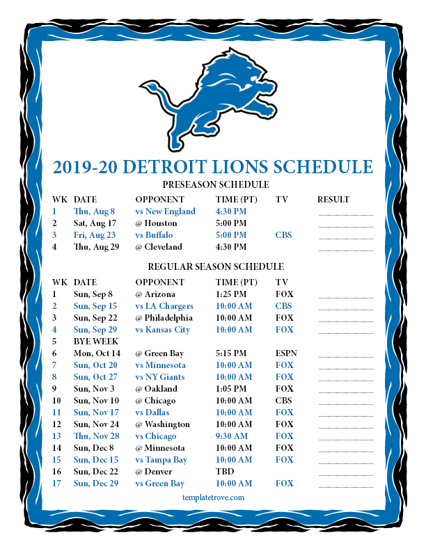 Keep up with the Detroit Lions in the 2019-20 season with our