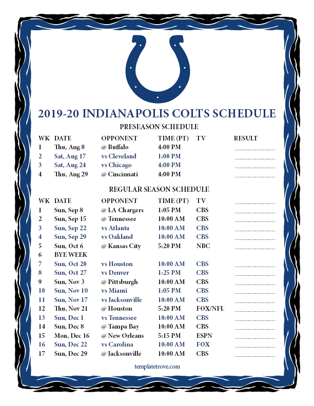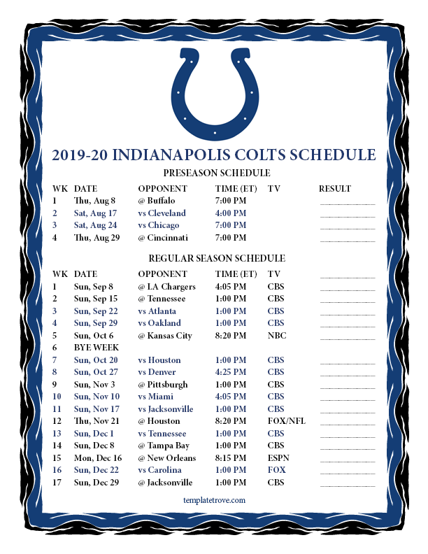 Keep up with the Inidanapolis Colts in the 2019-20 season