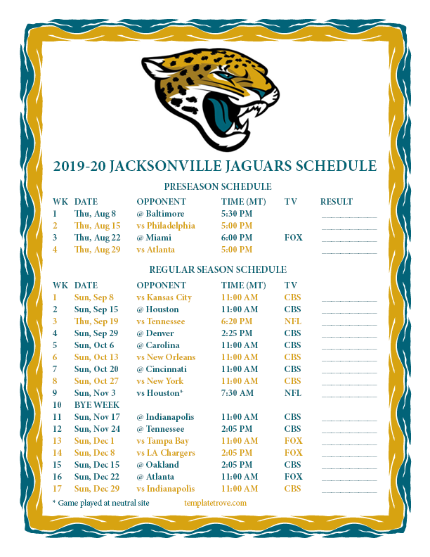 Keep up with the Jacksonville Jaguars in the 2019-20 season with