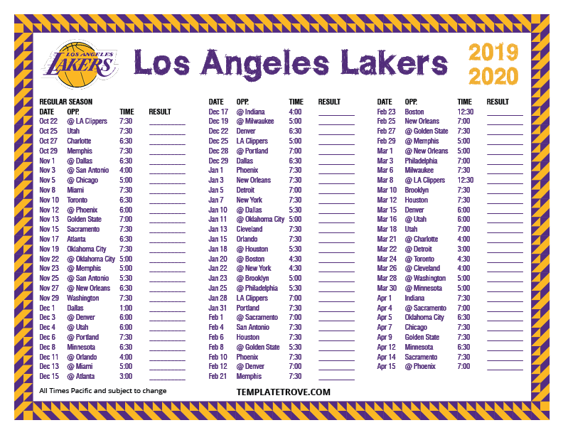 Keep up with the Los Angeles Lakers in the 2019-20 season with our