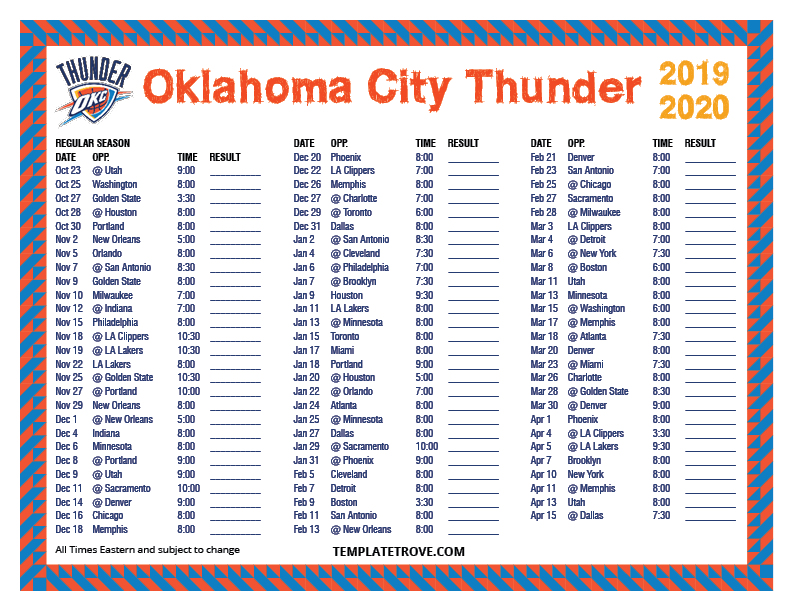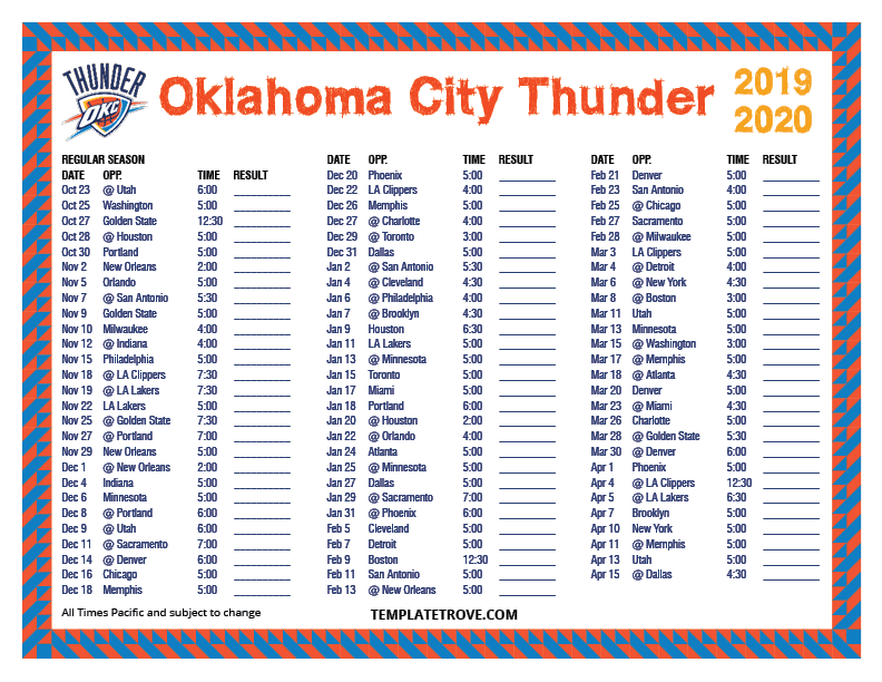 Keep up with the Oklahoma City Thunder in the 2019-20 season with our