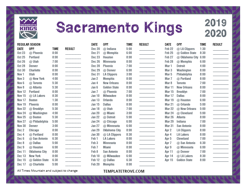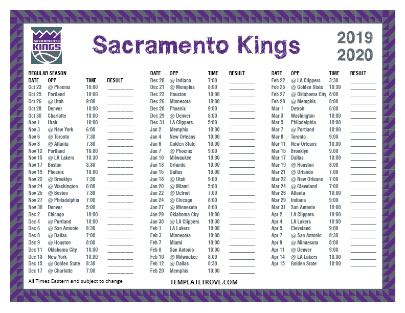 Keep up with the Sacramento Kings in the 2019-20 season with our