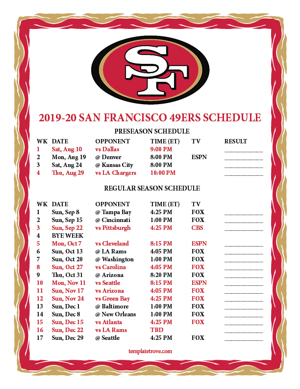Keep up with the San Francisco 49ers 2019-20 season with our