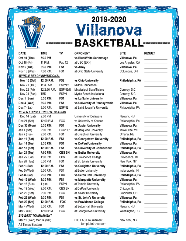 2019-20 College Basketball Schedules