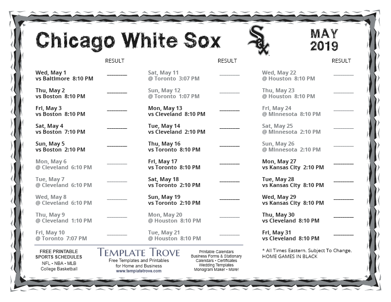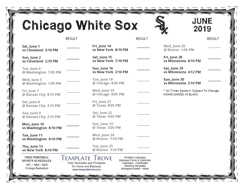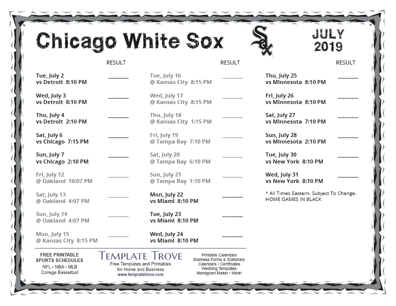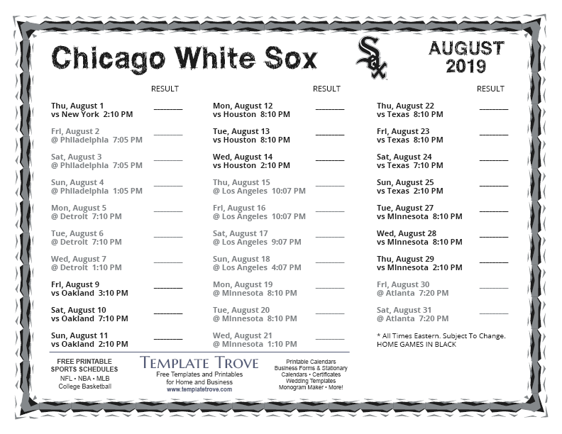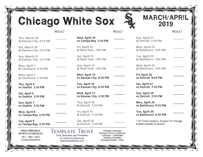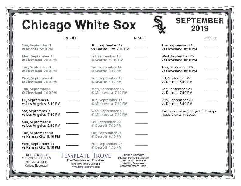 Keep up with the 2019 Chicago White Sox with our handy printable schedules, now available for each US time zone.