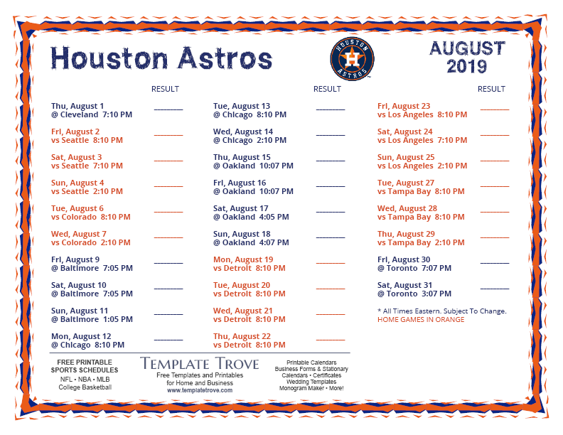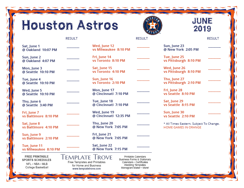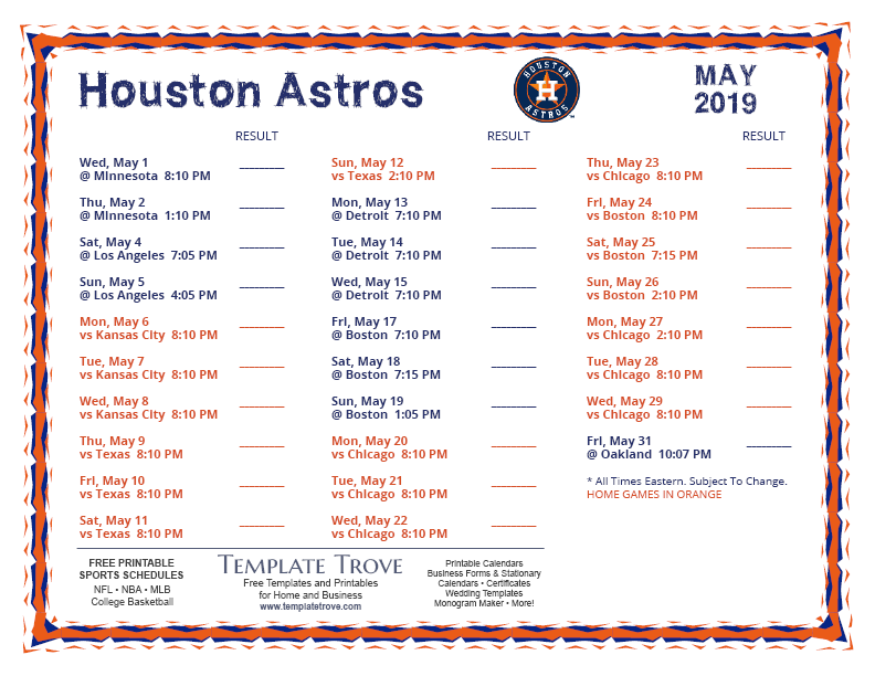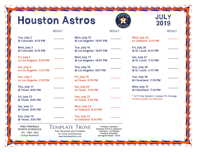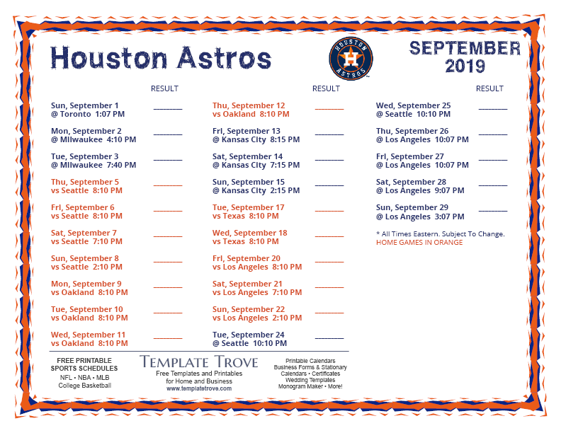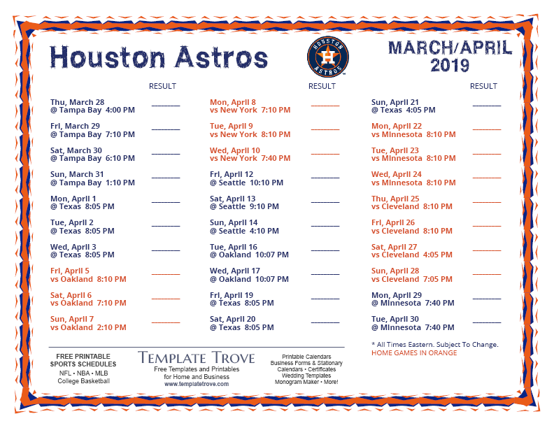 Keep up with the 2019 Houston Astros with our handy printable schedules, now available for each US time zone.