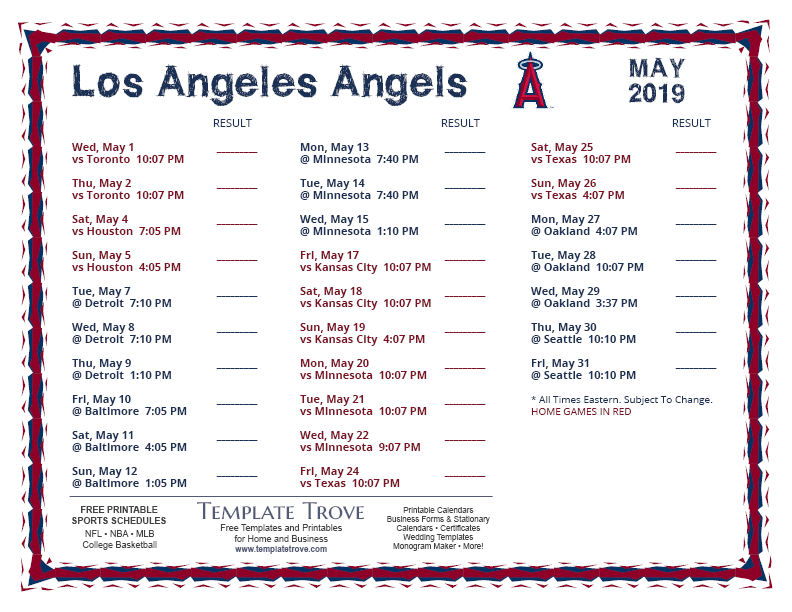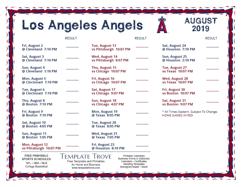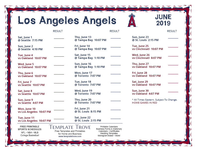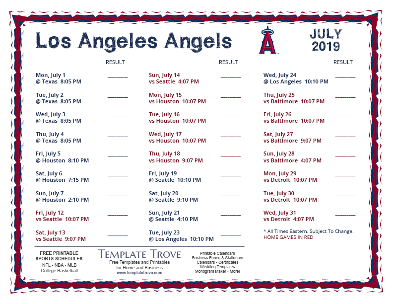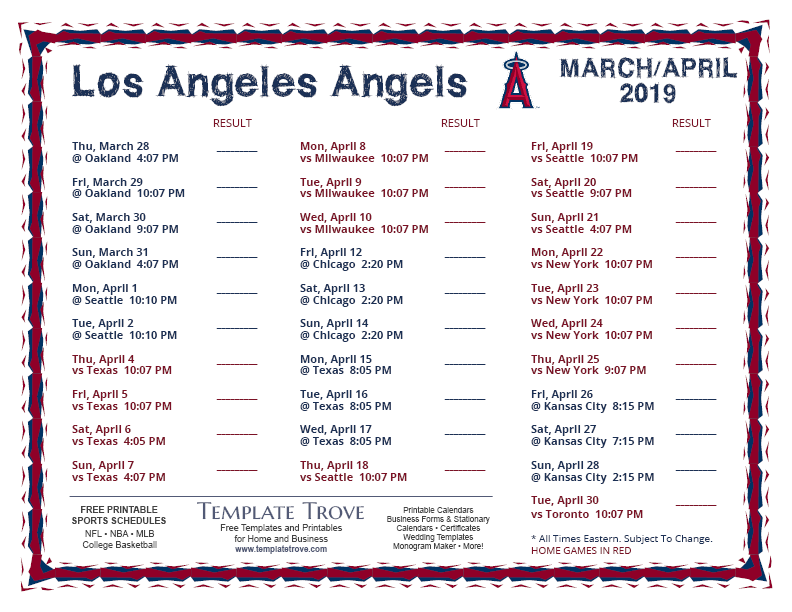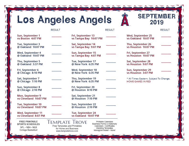 Keep up with the 2019 Los Angeles Angels with our handy printable schedules, now available for each US time zone.