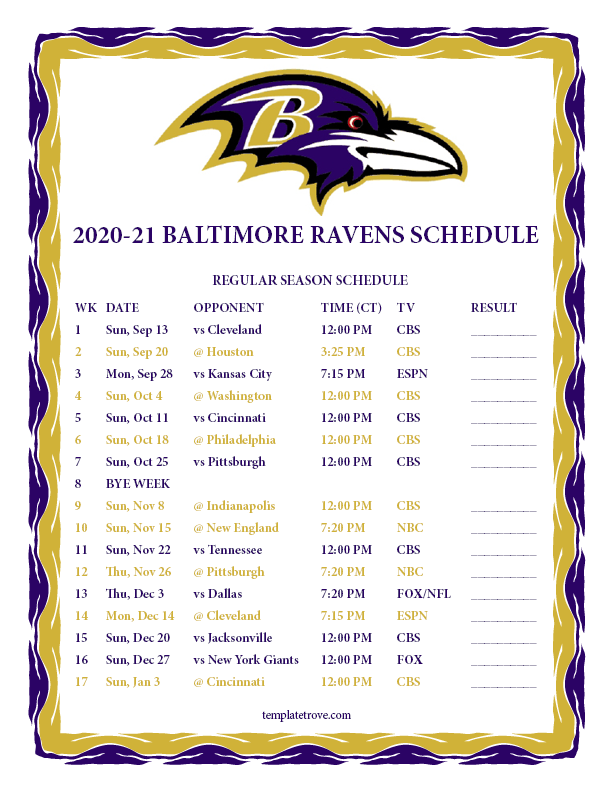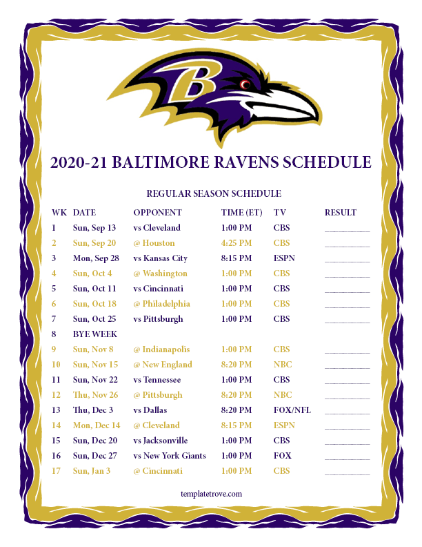 Keep up with the Baltimore Ravens in the 2020-21 season with our