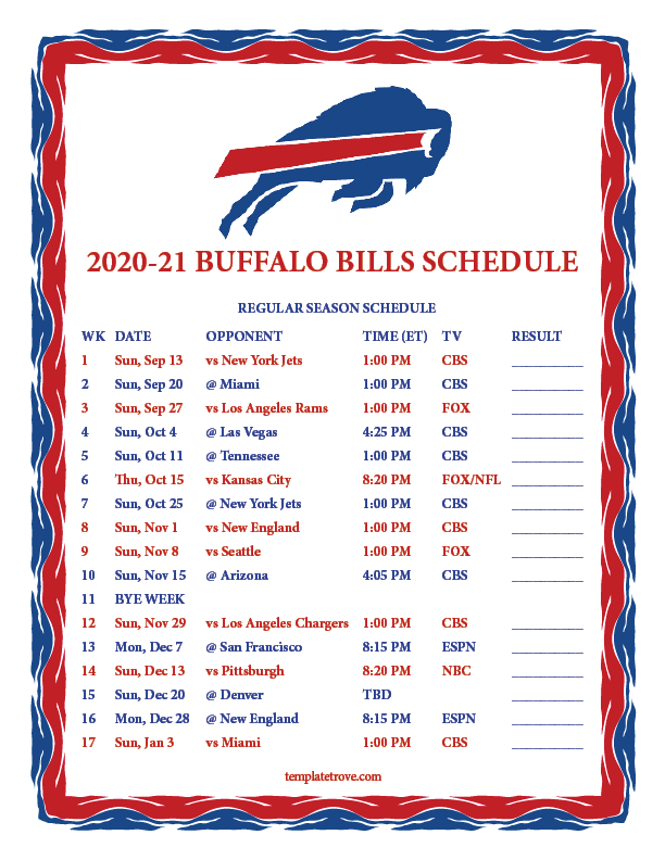 Keep up with the Buffalo Bills in the 2020-21 season with our