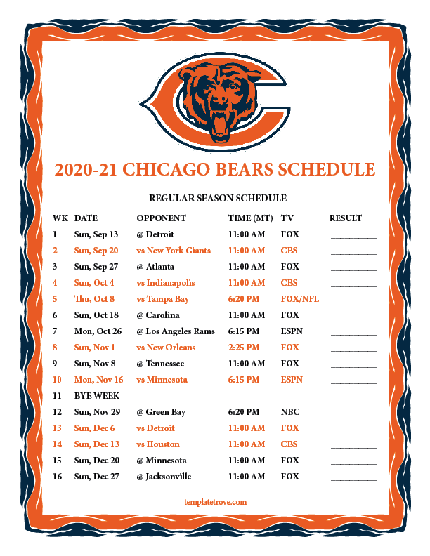 Keep up with the Chicago Bears in the 2020-21 season with our