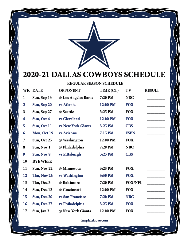 Keep up with the Dallas Cowboys in the 2020-21 season with our