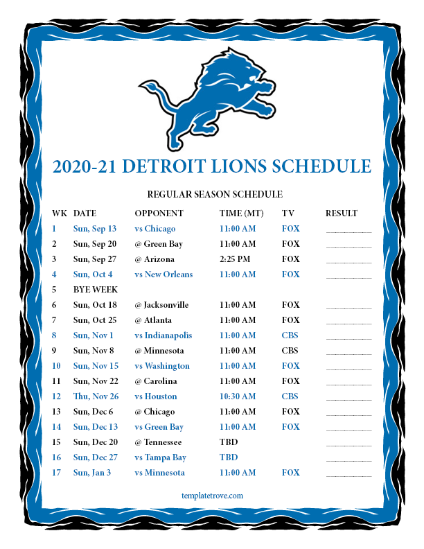 Keep up with the Detroit Lions in the 2020-21 season with our