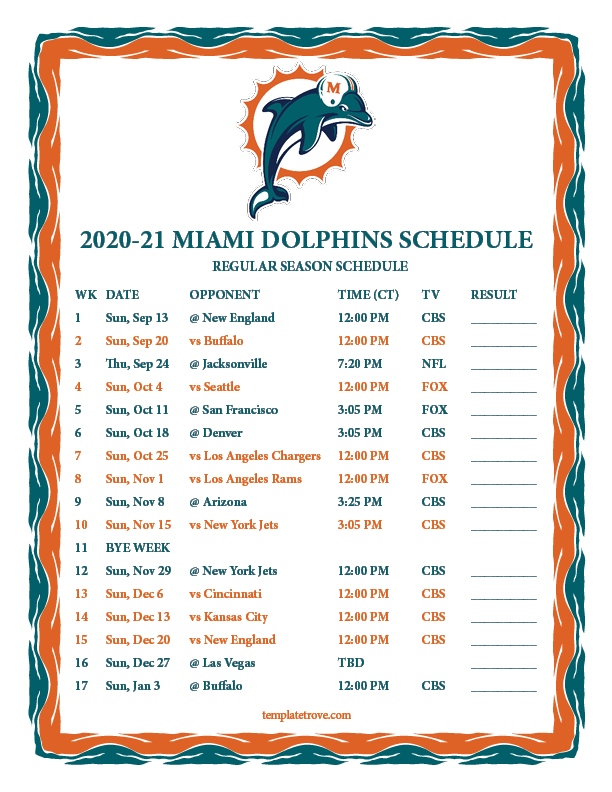 Keep up with the Miami Dolphins in the 2020-21 season with our