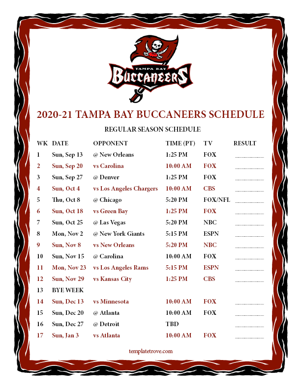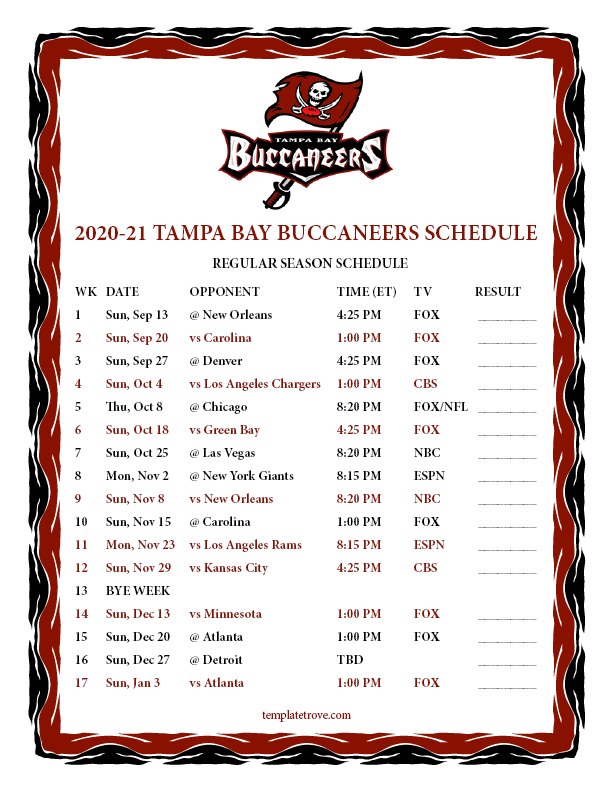 Keep up with the Tampa Bay Buccaneers 2020-21 season with our