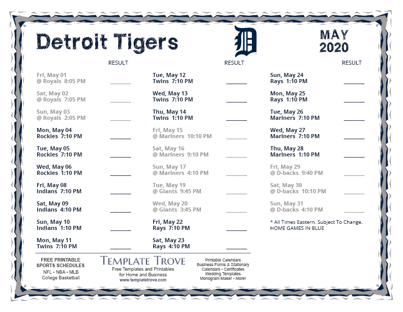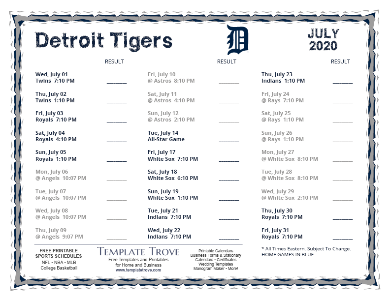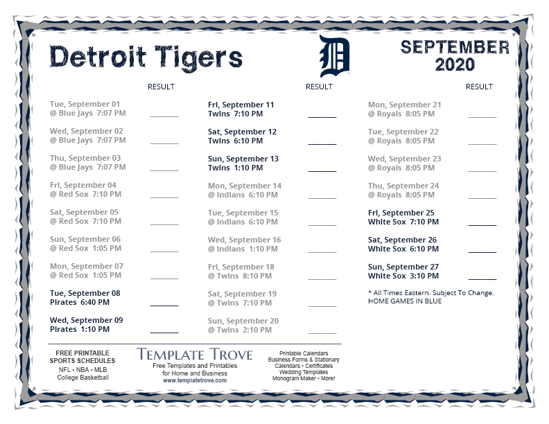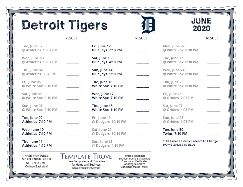 Keep up with the 2020 Detroit Tigers with our handy printable schedules, now available for each US time zone.