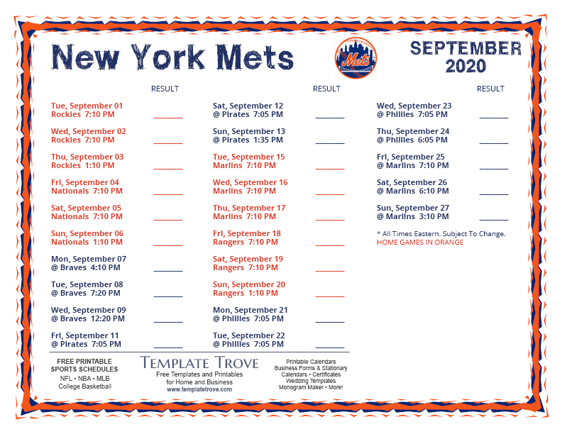 Keep up with the 2020 New York Mets with our handy printable schedules, now available for each US time zone.