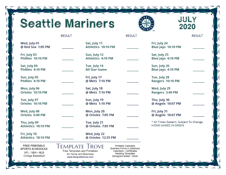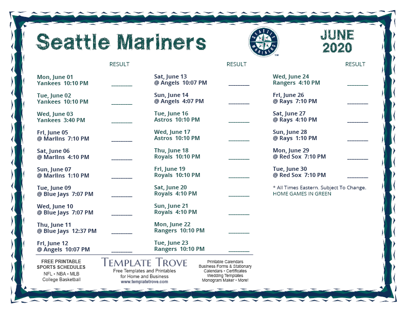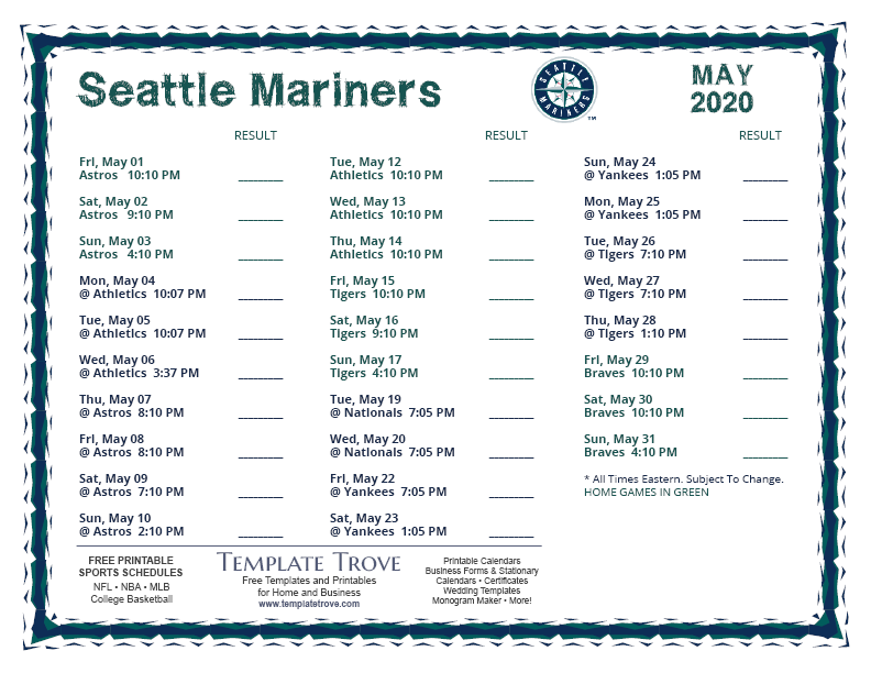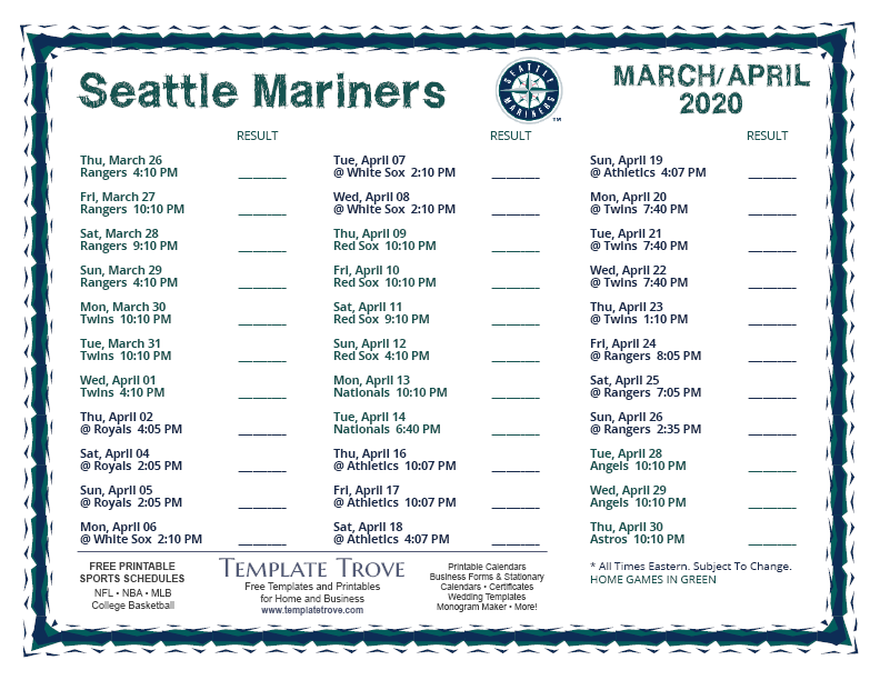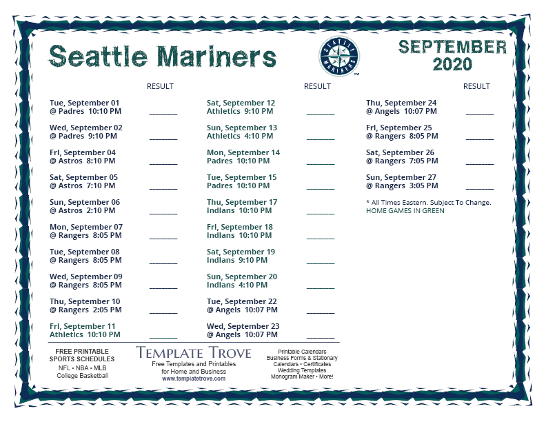 Keep up with the 2020 Seattle Mariners with our handy printable schedules, now available for each US time zone.