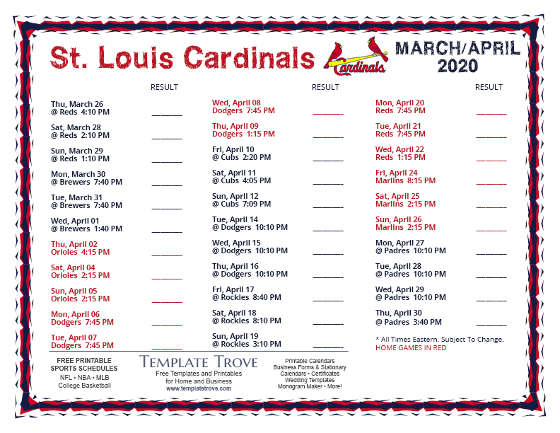 Keep up with the 2020 St. Louis Cardinals with our handy printable schedules, now available for each US time zone.