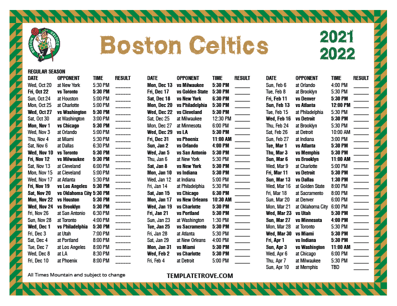 Keep up with the Boston Celtics in the 2021-22 season with our