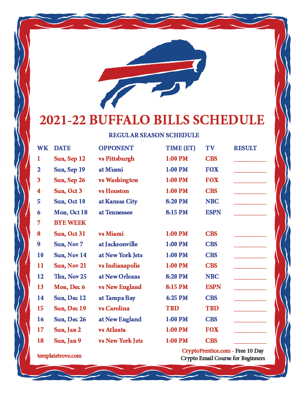 Keep up with the Buffalo Bills in the 2021-22 season with our