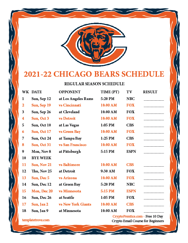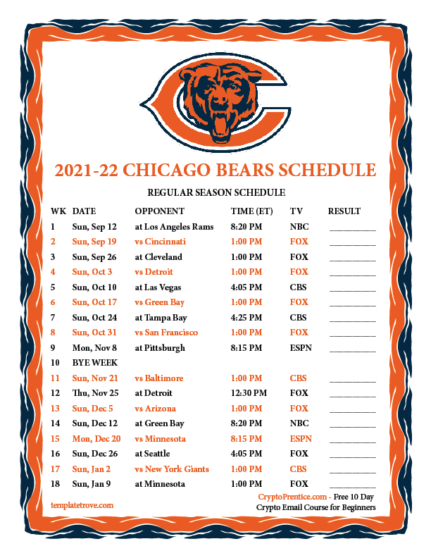 Keep up with the Chicago Bears in the 2021-22 season with our