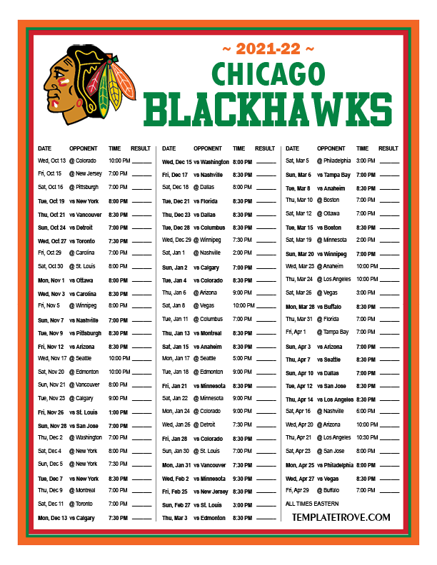 Keep up with the Chicago Blackhawks in the 2021-22 season with our