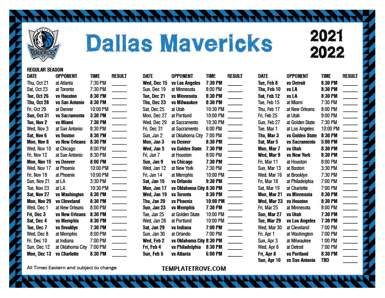 Keep up with the Dallas Mavericks in the 2021-22 season with our
