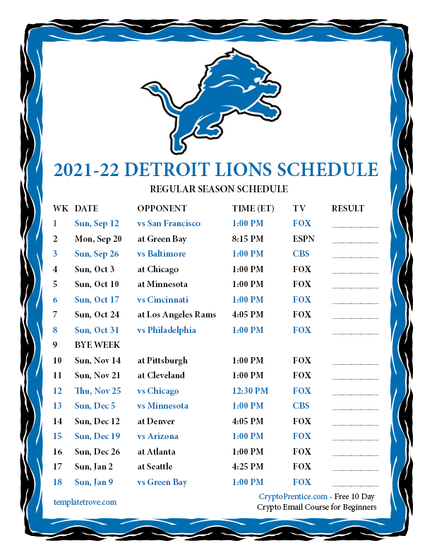 Keep up with the Detroit Lions in the 2021-22 season with our