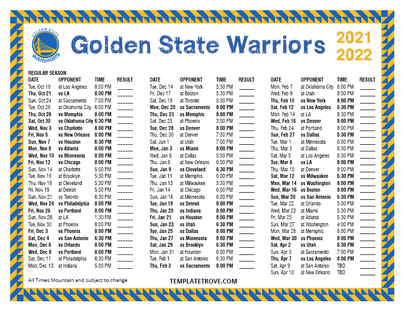 Keep up with the Golden State Warriors in the 2021-22 season with