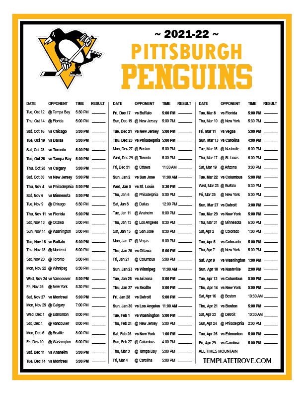 Keep up with the Pittsburgh Penguins in the 2021-22 season with our