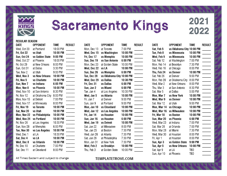 Keep up with the Sacramento Kings in the 2021-22 season with our