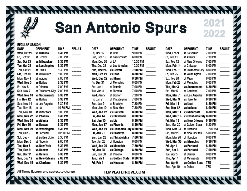 Keep up with the San Antonio Spurs in the 2021-22 season with our