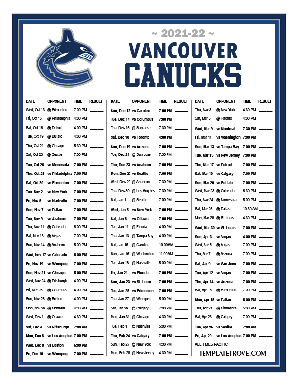Keep up with the Vancouver Canucks in the 2021-22 season with our