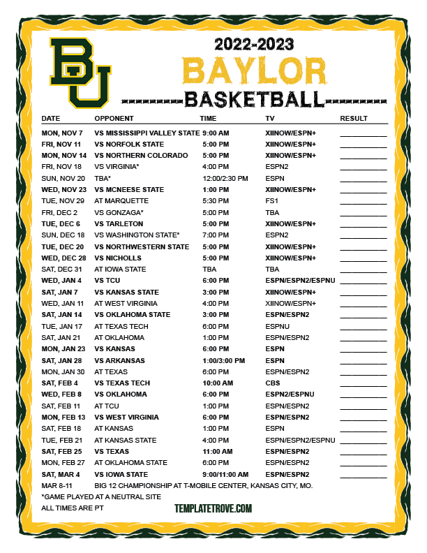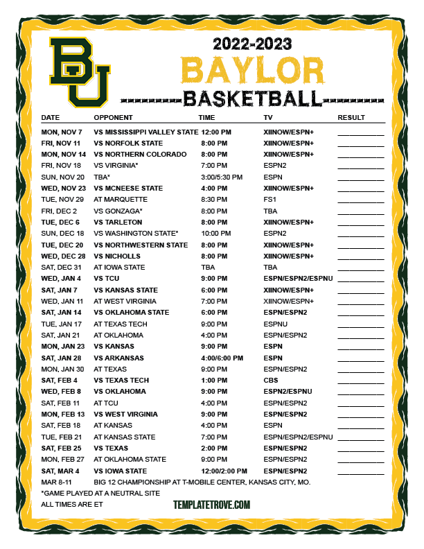 Keep up with the Baylor Bears basketball in the 2022-23 season with our