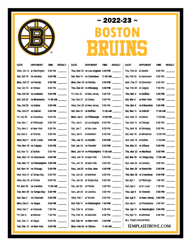 Keep up with the Boston Bruins in the 2022-23 season with our