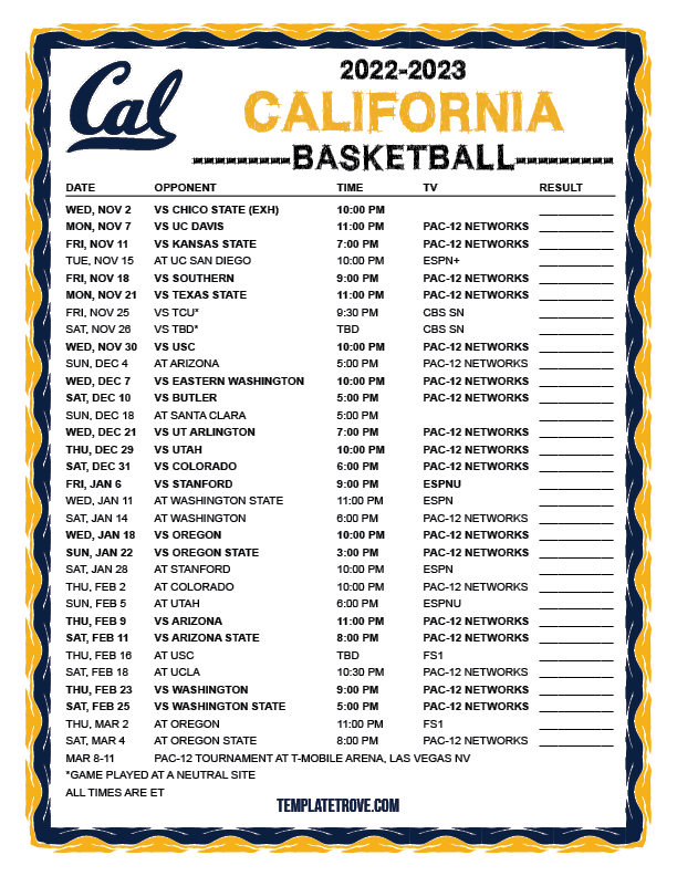 Keep up with the California Golden Bears basketball in the 2022-23 season with our