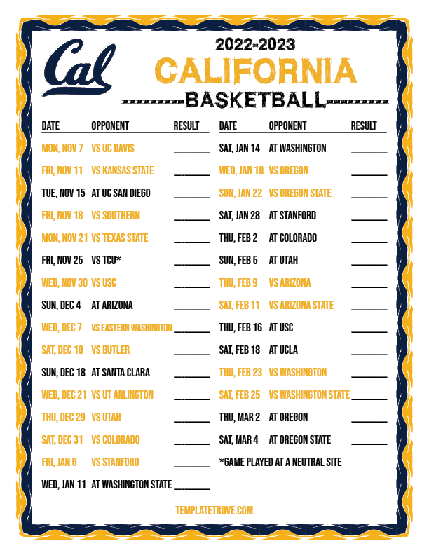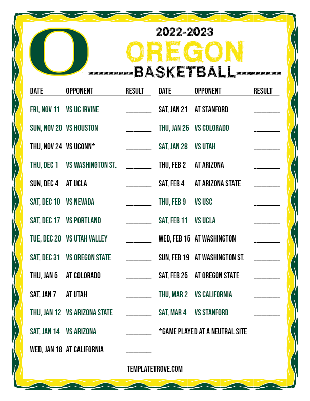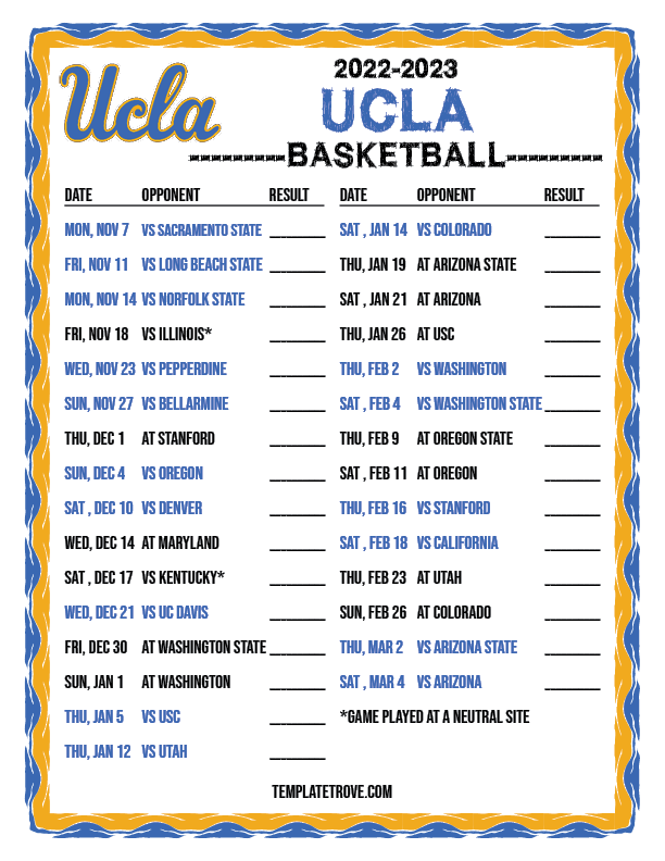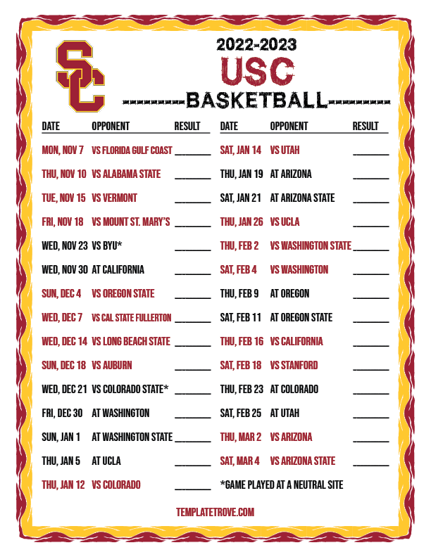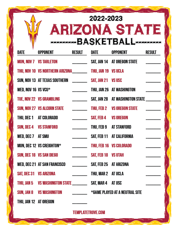 Printable college basketball schedules are in PDF format and print on 8 1/2" x 11" paper.