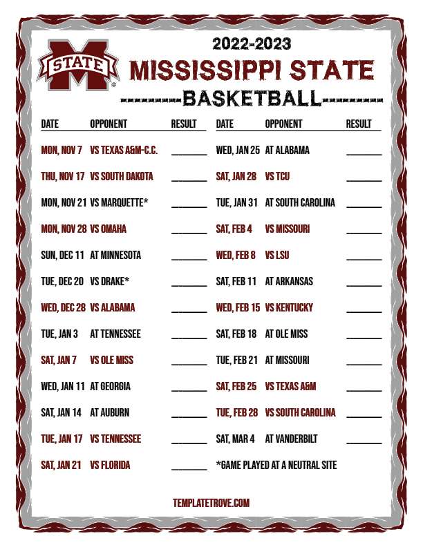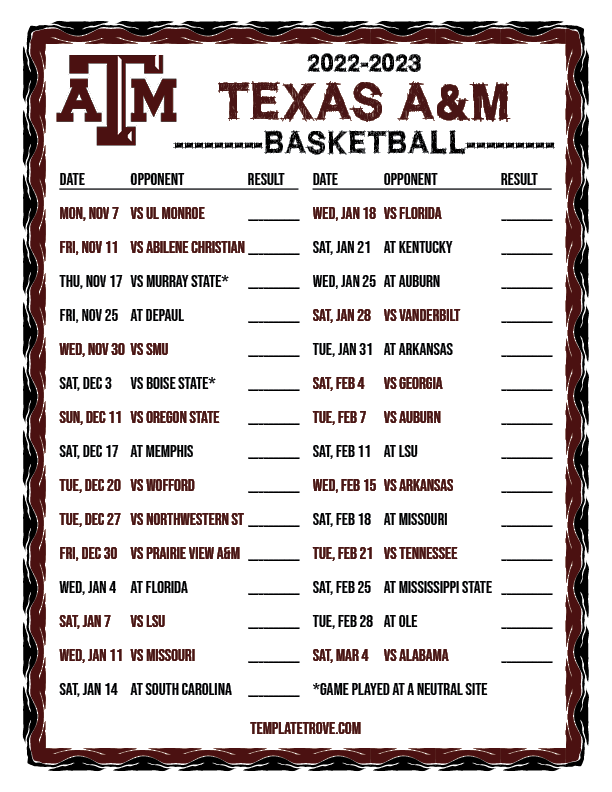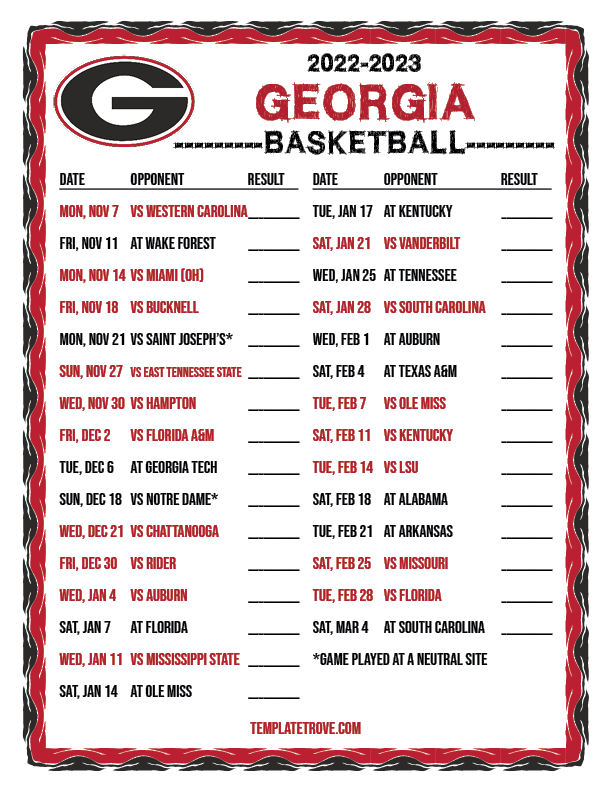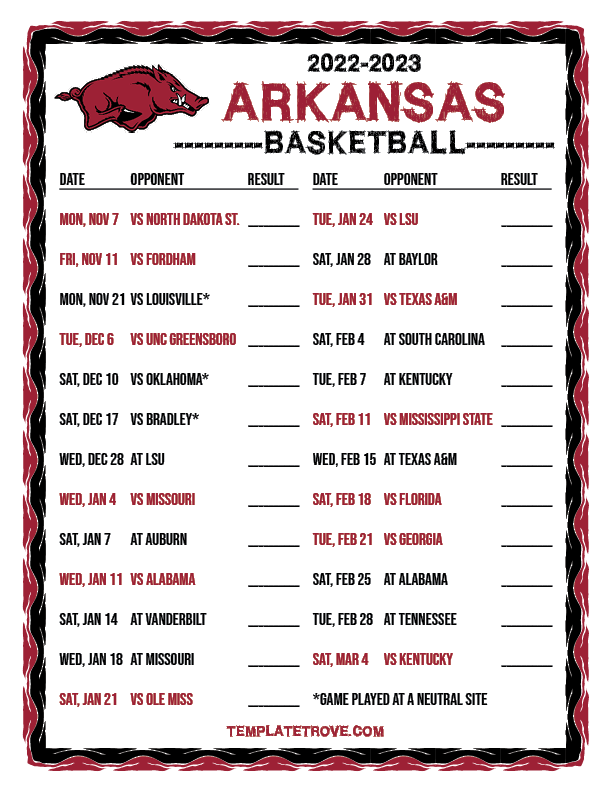 Printable college basketball schedules are in PDF format and print on 8 1/2" x 11" paper.