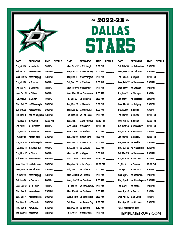 Keep up with the Dallas Stars in the 2022-23 season with our