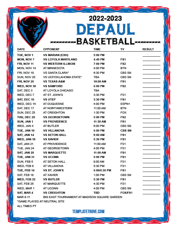 Keep up with the DePaul Blue Demons basketball in the 2022-23 season with our
