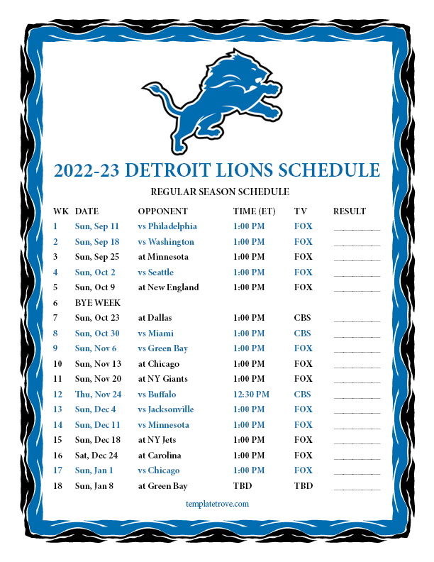 Keep up with the Detroit Lions in the 2022-23 season with our