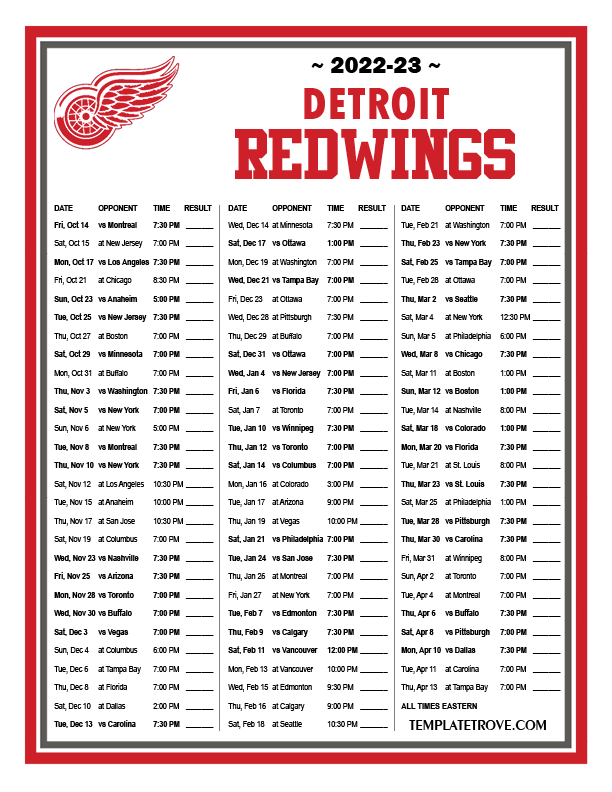 Keep up with the Detroit Red Wings in the 2022-23 season with our
