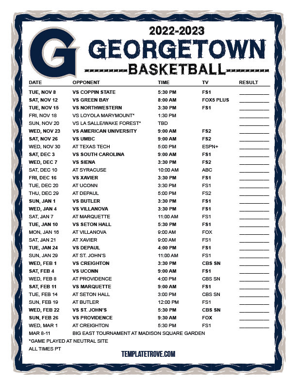 Keep up with the Georgetown Hoyas basketball in the 2022-23 season with our