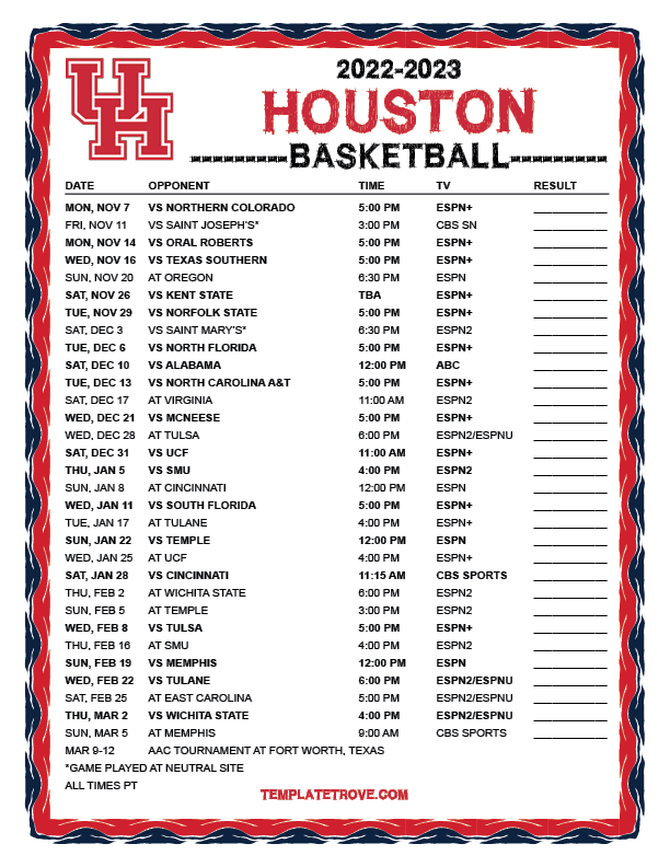 Keep up with the Houston Cougars basketball in the 2022-23 season with our