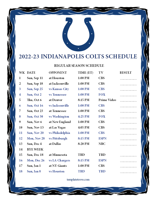 Keep up with the Inidanapolis Colts in the 2022-23 season