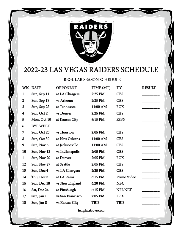 Keep up with the Las Vegas Raiders 2022-23 season with our free
