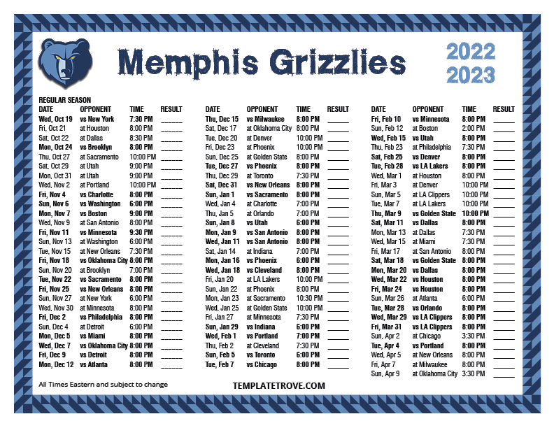 Keep up with the Memphis Grizzlies in the 2022-23 season with our