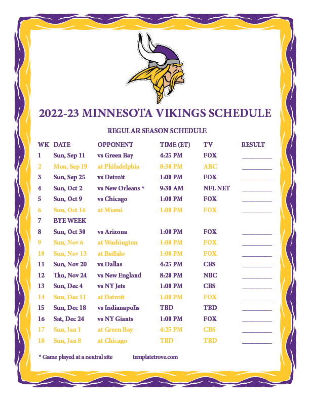 Keep up with the Minnesota Vikings 2022-23 season with our free