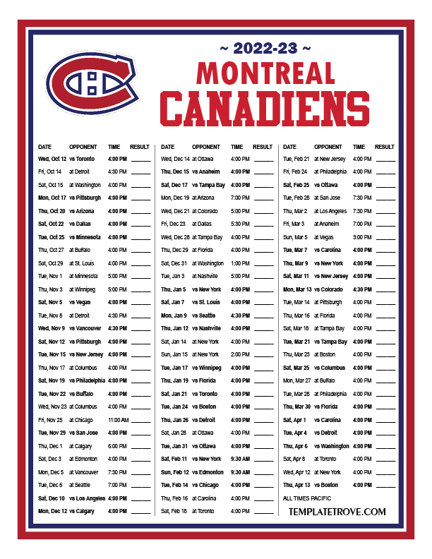 Keep up with the Montreal Canadiens in the 2022-23 season with our
