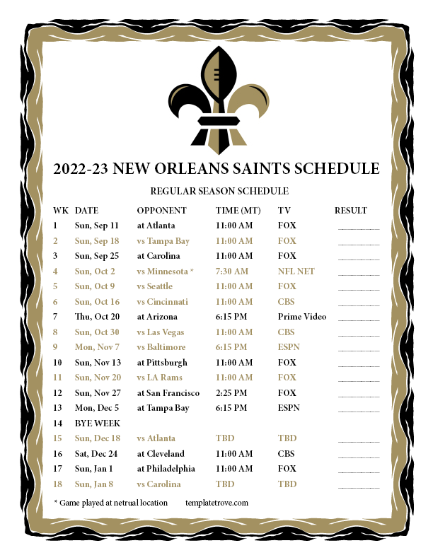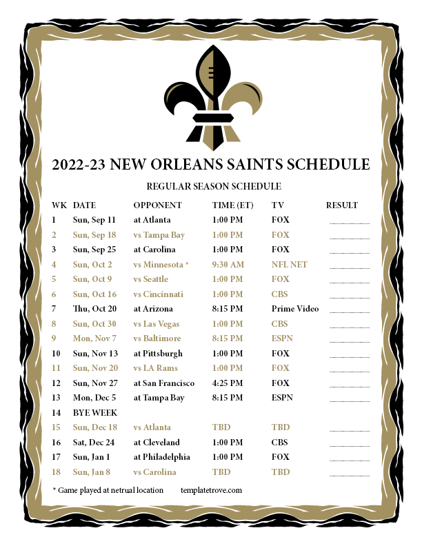 Keep up with the New Orleans Saints 2022-23 season with our free